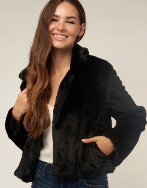 Saco negro corto de peluche con bolsas