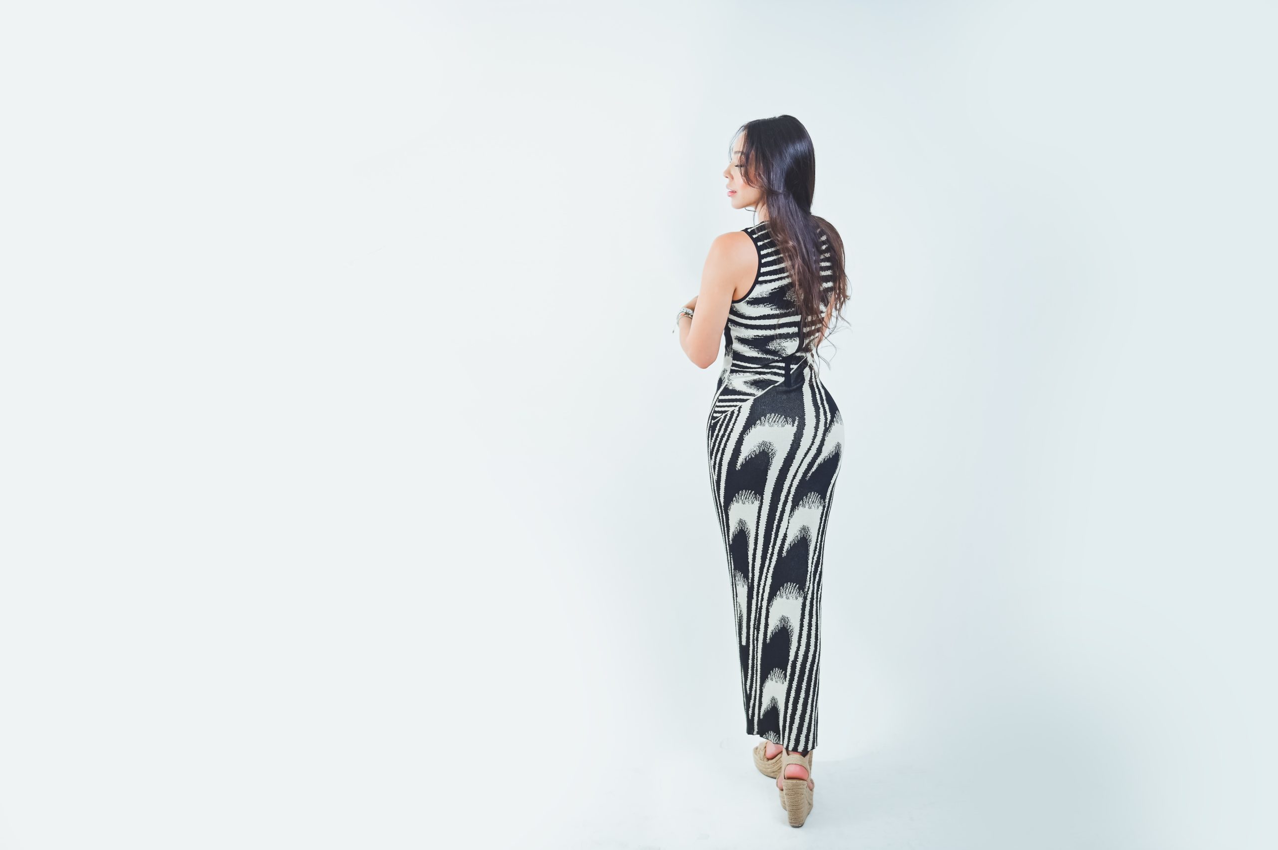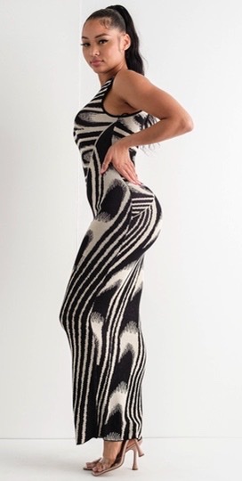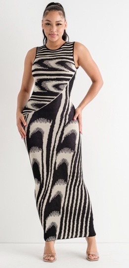 Vestido largo tela punto sin manga, cierre en espalda